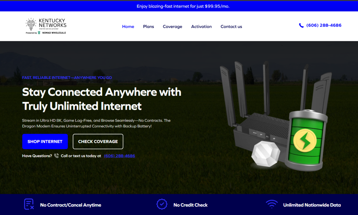 This “business-in-a-box” franchise model provided Kentucky NetWorks with everything needed to hit the ground running—a free demo modem, preconfigured SIM cards, access to Nomad’s nationwide wireless infrastructure, billing systems, marketing support, and, most importantly, the ability to control their own pricing and branding.